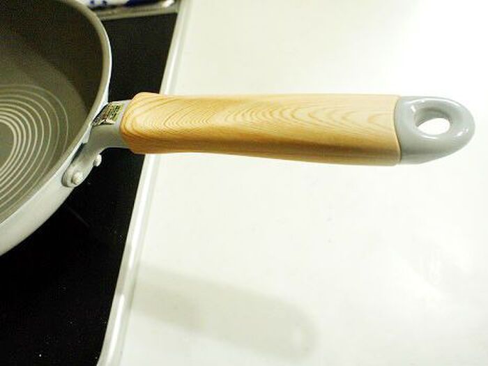 取っ手も、木製っぽいフェノール樹脂で、ツルッツル、性能や使いやすさを重視するのは勿論、