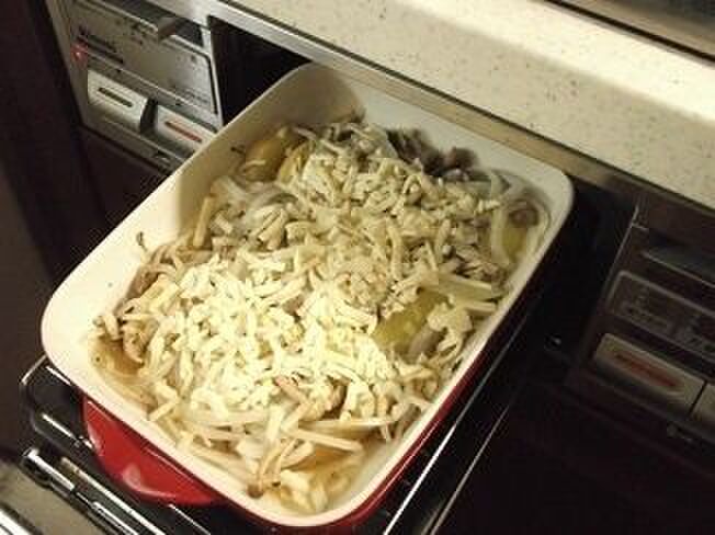 トースターか魚焼きグリルでチーズが溶けるまで焼く。