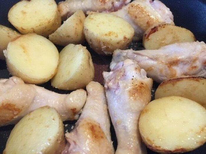 鍋にごま油大さじ1を入れ鶏の皮目を下にして