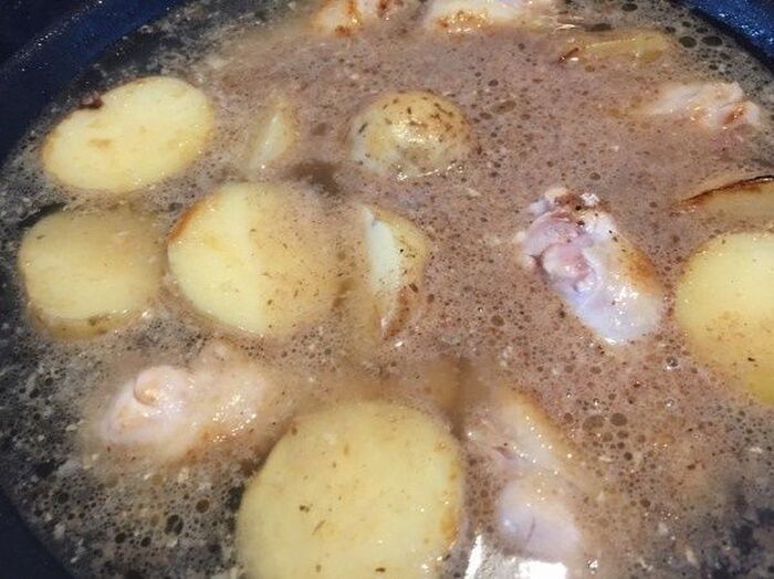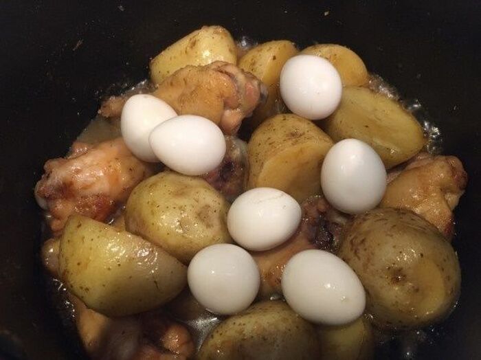煮汁が半量以下になったらウズラの卵を加え強火にして煮汁を全体に絡めていく
