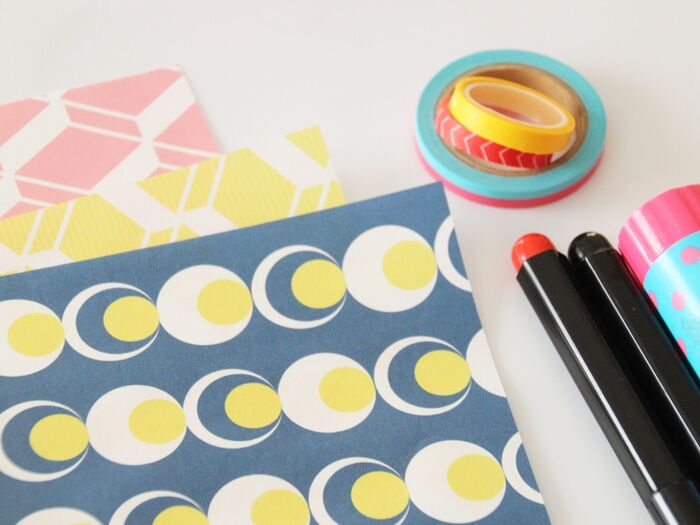 お好みの色紙を数枚重ね、ひし形の台紙にして壁に貼り付けて♪