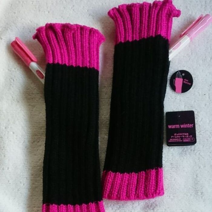 とは言え2目ゴム編みになっているので、はめると勿論伸びてフィットします。