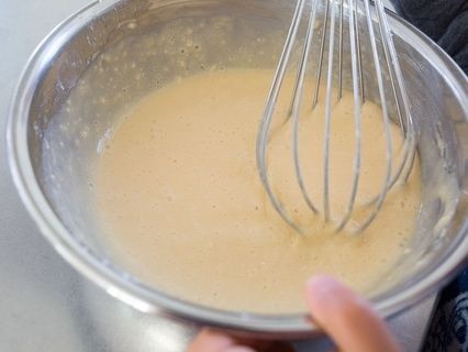 【A】を加えて泡だて器で軽く混ぜる。(粉っぽさがなくなったら混ぜるのをやめる)