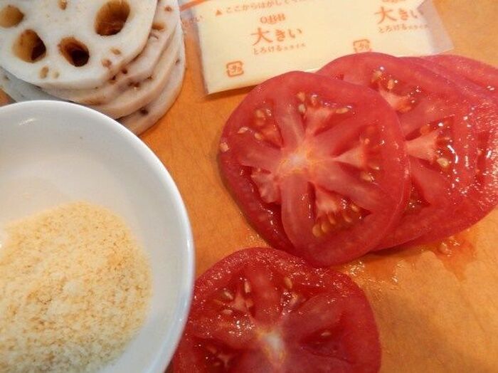 トマトとレンコンは輪切りにしたときに同じぐらいの大きさにすると