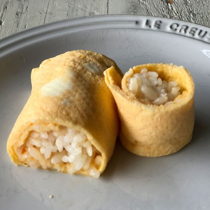 中にご飯を入れて巻いてみました。