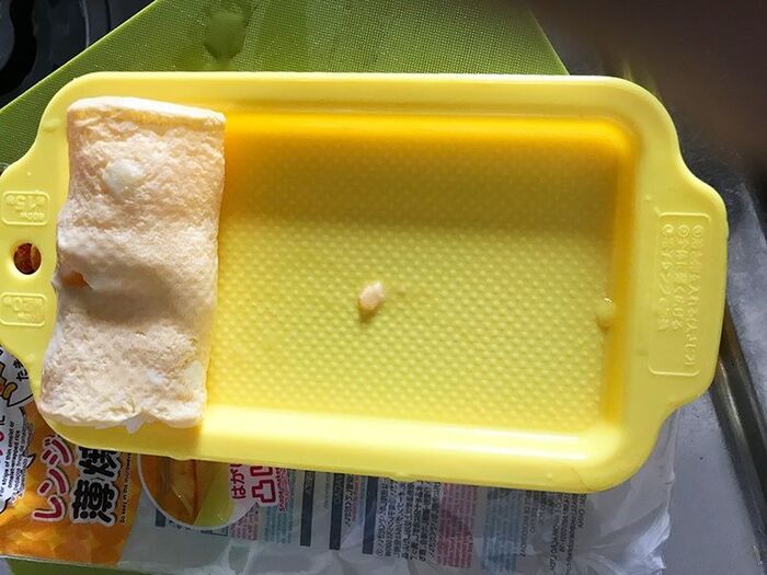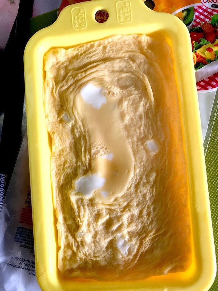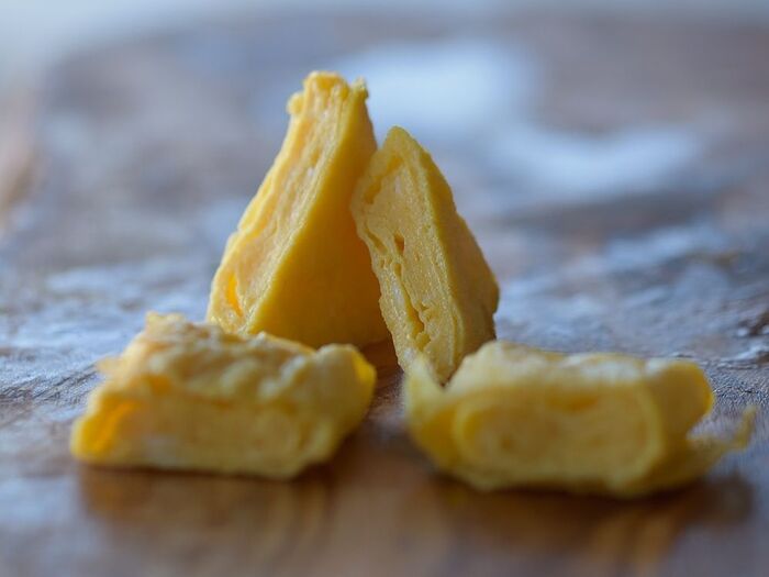 半分ほど固まったら型をそっと外してくるくる巻けば簡単に卵焼きが完成。