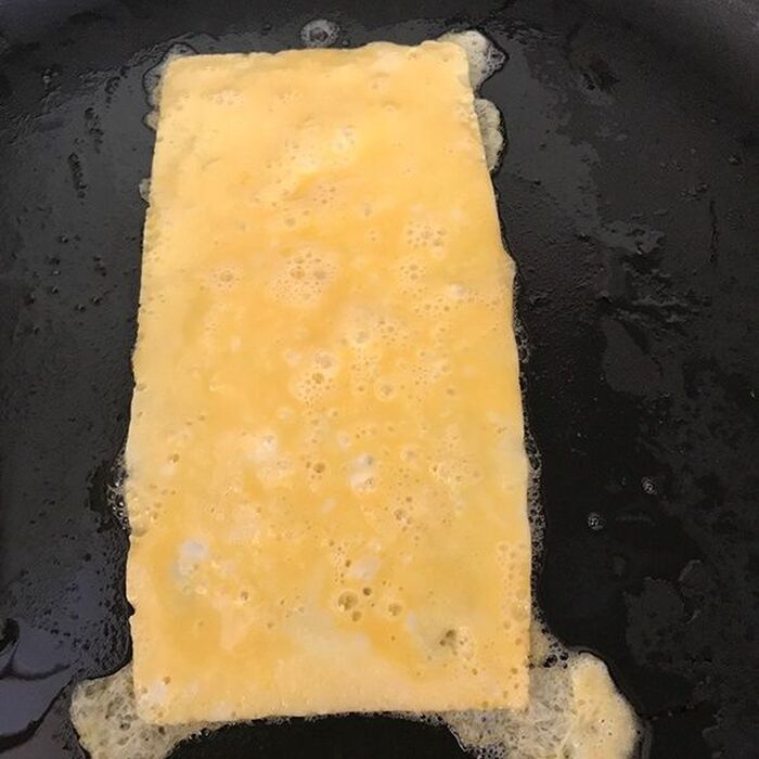 平たいまま細切りすれば、ちょっとだけ欲しい錦糸卵とかにも、火を使わないので便利!