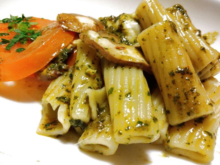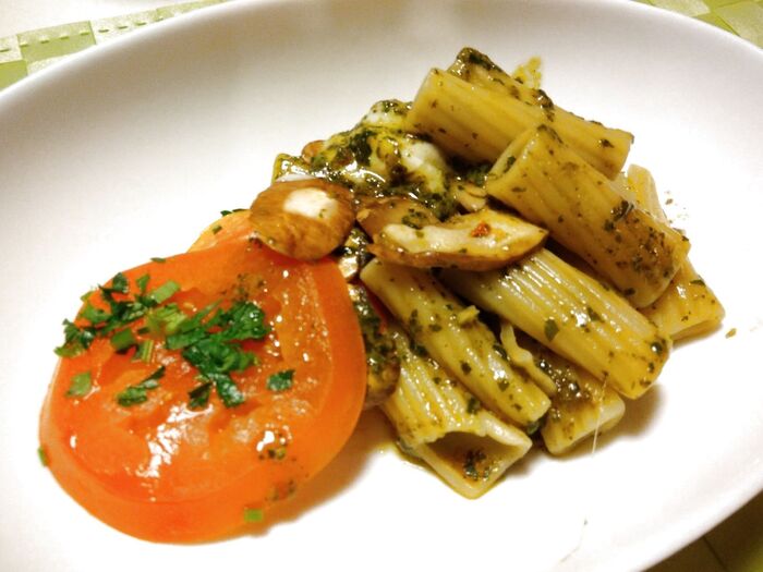 パスタはペンネのような形をしていますが、普通のペンネとは何かが違いました。