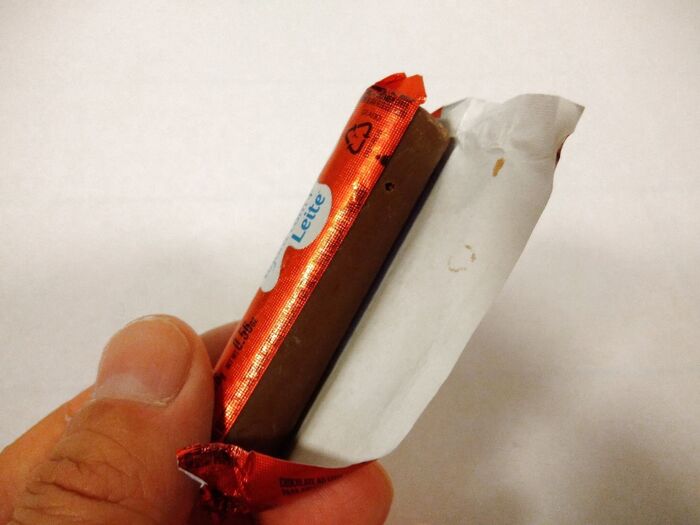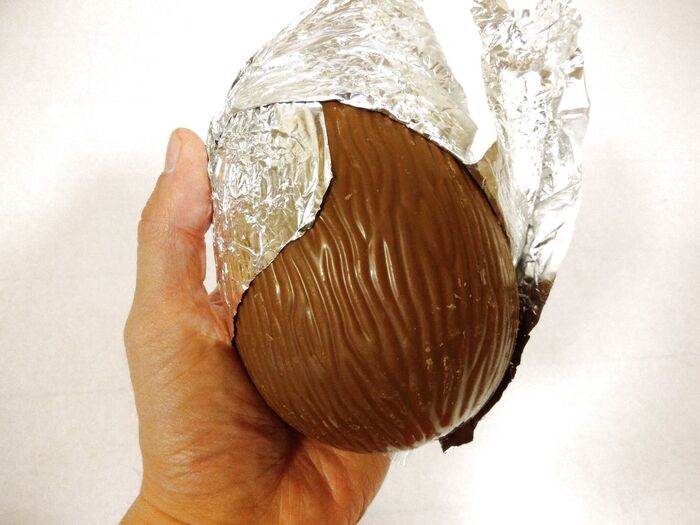 おっ!でっかいチョコレートが出てきました。しかも表面はアーモンドの表面のような模様になっています。ちょっとちょっと!ドキドキしてきますね。