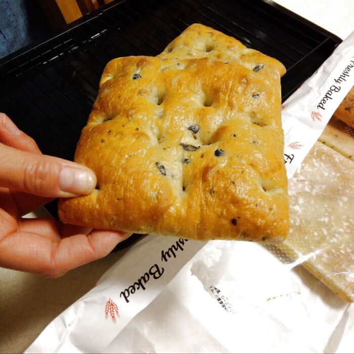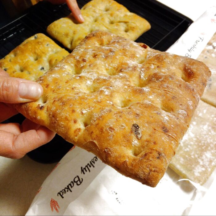 そのまま常温で食べてもいいのですが、バラエティーフォカッチャをトースターなどで少し温めてたべるとローズマリーやオリーブなどの香りがグンとアップするので、おすすめですよ!