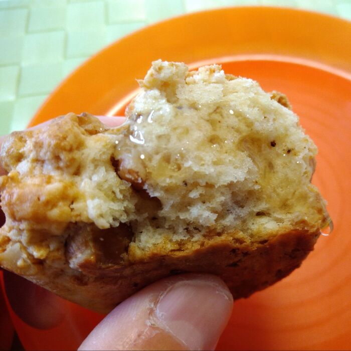 中にはクルミとレーズンが入っているので、全く何も入っていないプレーンのものよりは飽きずに結構食べちゃいますね。