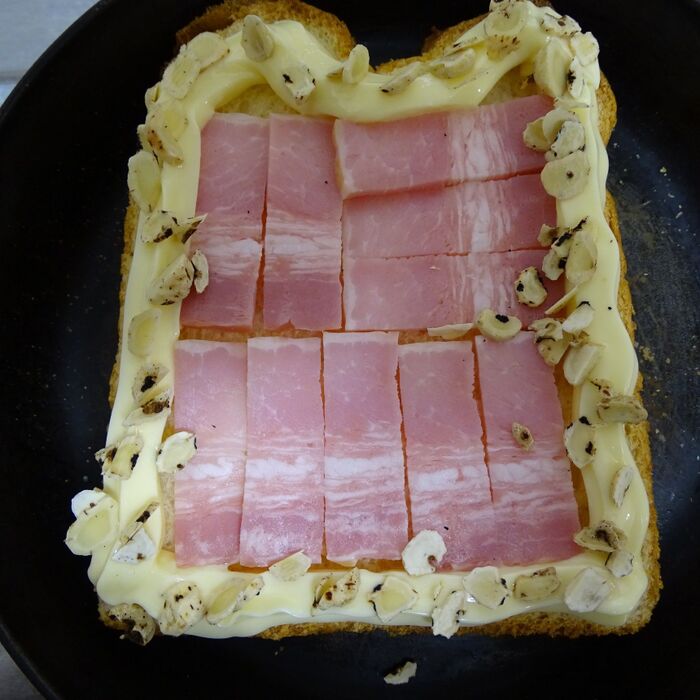 で・・・・中にベーコン敷き詰め!! もっと適当で良いですよ、性格出てしまいます(笑)