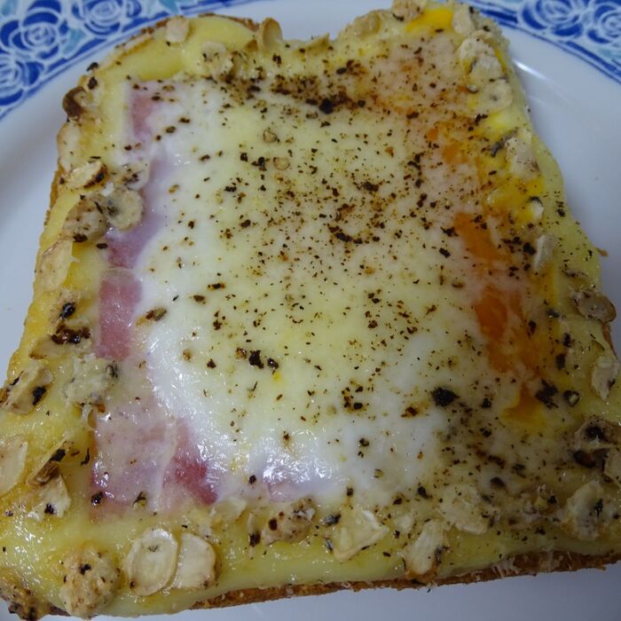 合うんだよこれがまた・・・・ベーコン、卵、ブラックペッパー、パルメザン