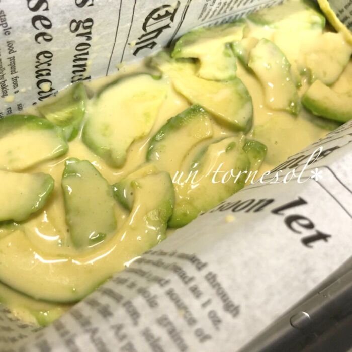 *アボカドやプチトマト・ツナを並べた後は、少量の生地を上からかけてください。