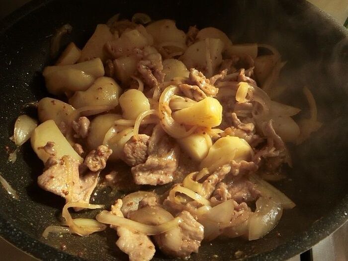 豚肉に火が通ったらじゃが芋を入れてさっと炒めます。★印の調味料を入れ、塩こしょうで味を整えて完成♪