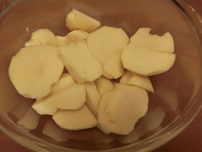 じゃが芋は1㎝くらいの厚さに切ります。耐熱容器に入れ、ふんわりラップをかけ、電子レンジ600wで3分加熱します。