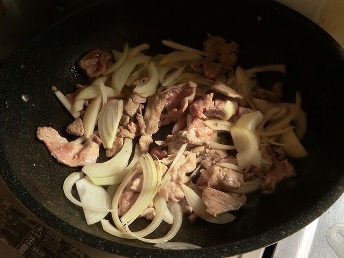 豚肉に塩こしょうを振り、玉葱は薄くスライスします。