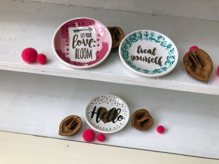 豆皿の下に小さいデコレーションボールを置いて角度をつけて写真を撮っていますよ♡