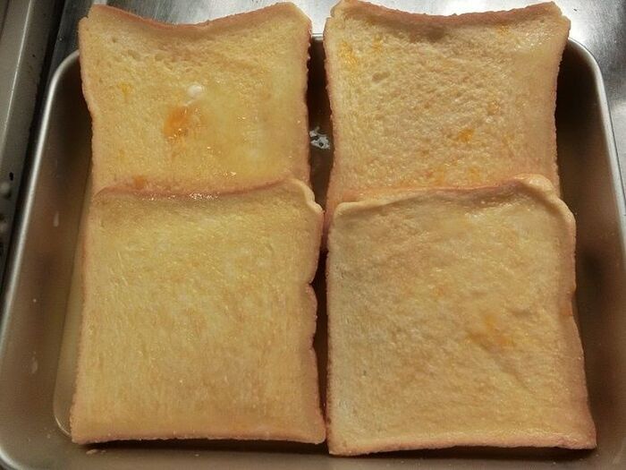 食パンに卵液をしっかりしみ込ませると、中まで味がしみてとても美味しいです。