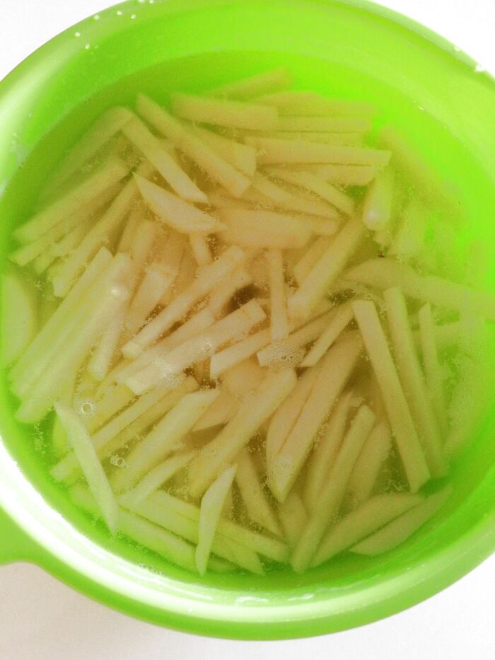 ①じゃが芋は皮を剝いて厚さ5mm程度の千切りにする。