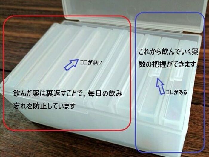 このお薬の管理方法は、毎日必ず飲まなければならない方の常備薬の管理にお勧めです。
