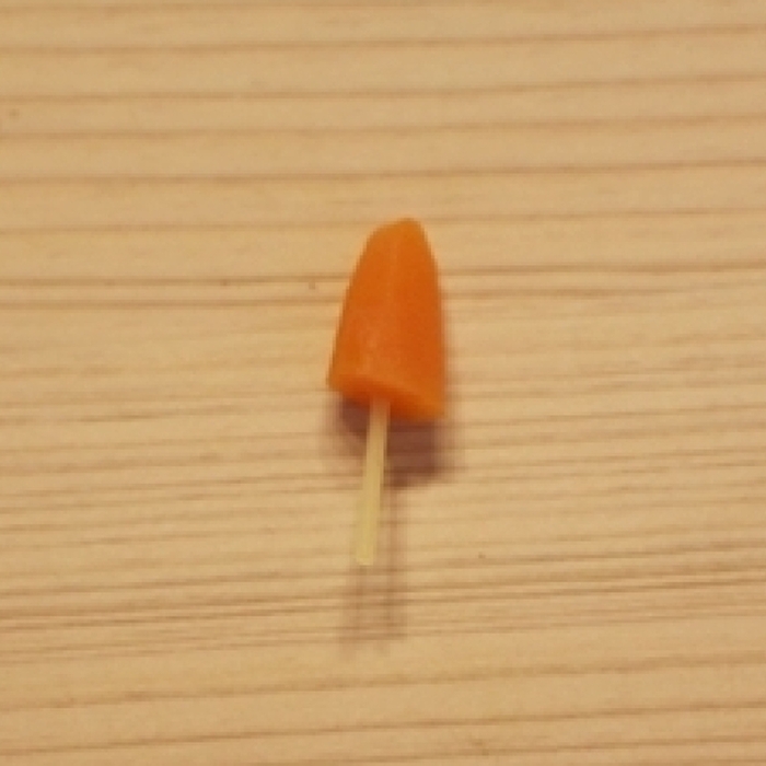 4.鼻は茹で人参をパスタに刺して、鉛筆を削る要領で。