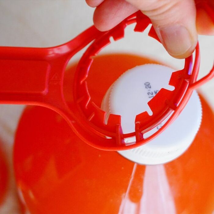 こちらのジュースはボトルの持ち手はありません。でもこの重さを支えながら注ぐのは至難の業。そこで持ちやすく、再度が凹んで握りやすい形状になっています。開けたばかりは重いですが、私の力でも片手で注げるくらいになります。ちなみに、前と後ろでは凹んだ部分の幅が違います。後ろの方が幅が狭いので指が短い私は持ちやすかったです。反対に、前から持った方が持ちやすい方もいるかもしれません。