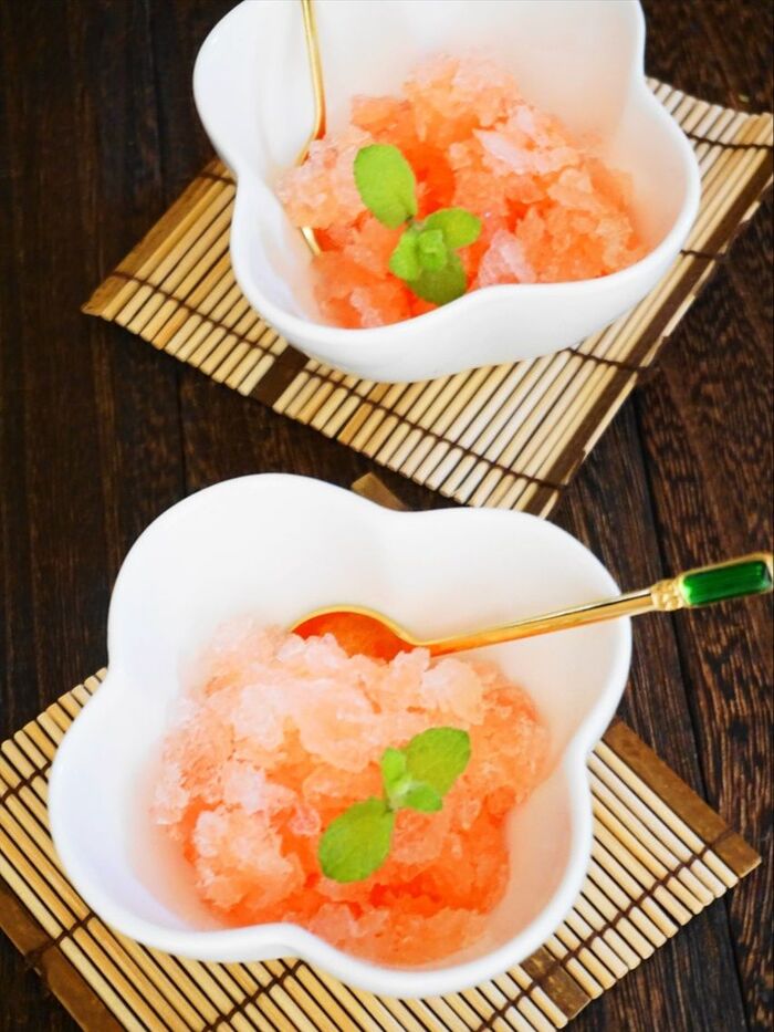 凍らせると甘さが控えめに感じるから…と、そのまま凍らせてシャーベットにしてみました。