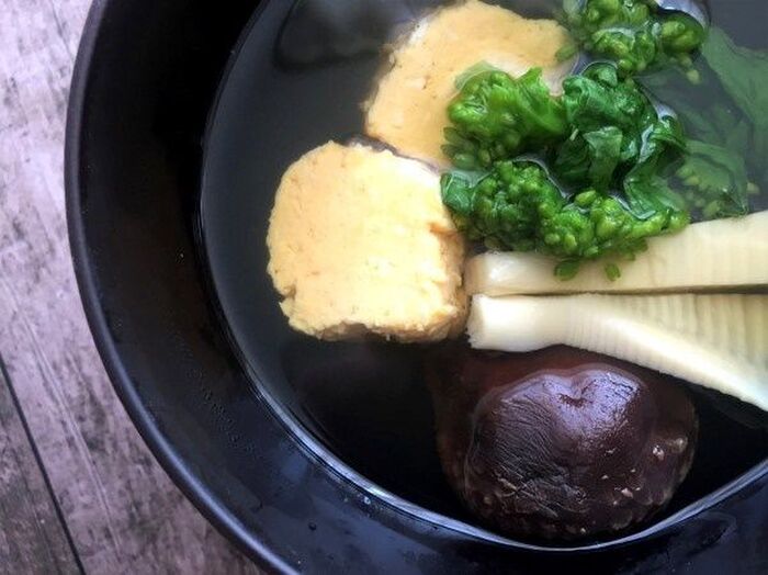 しめ卵はふんわりふわふわ かきたま汁ともまた一味違うおしゃれなお吸い物です。