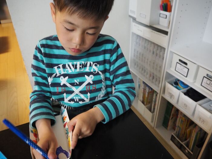まずは牛乳パックの上部の三角の折った部分を開きカットします。