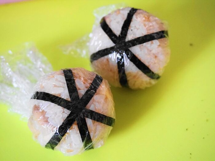 細長くカットした海苔を貼って、ラップで再度包んで馴染ませます。
