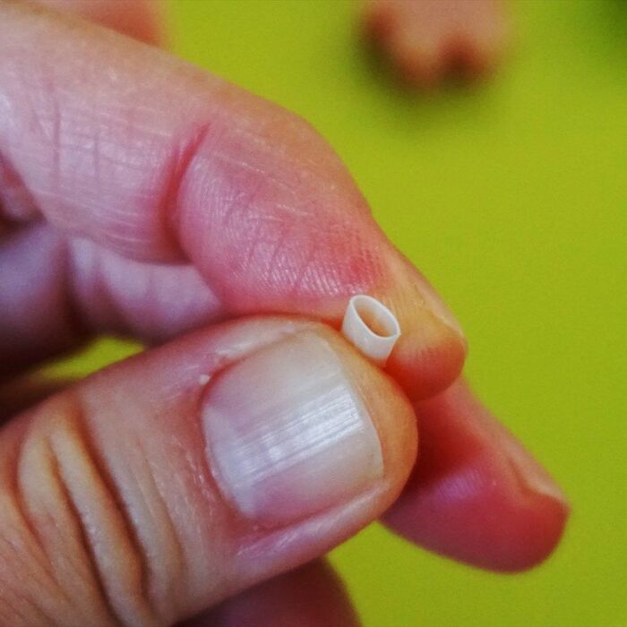 小さいサイズのストローの先をつぶして楕円に。