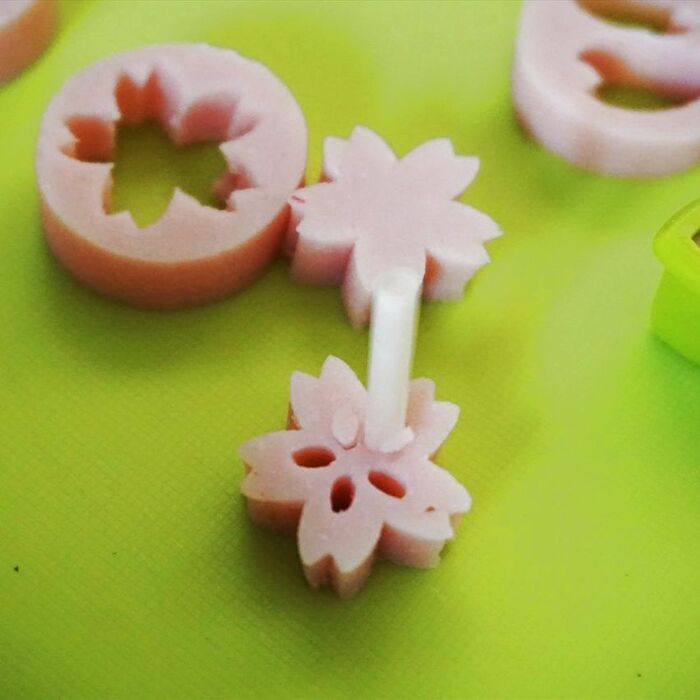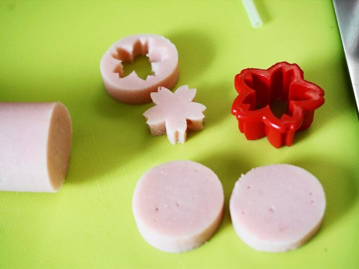 魚肉ソーセージを輪切りにカット。桜型で抜きます。