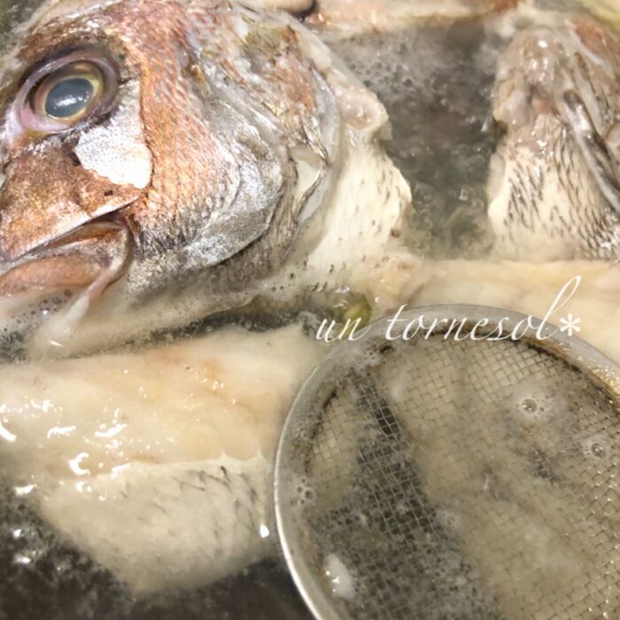 *鯛のアラの下処理をしっかりと行うことで、魚臭さを取り除くことができます。