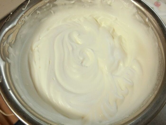 生クリームと半量位の砂糖を混ぜ合わせ、8分立てにします。