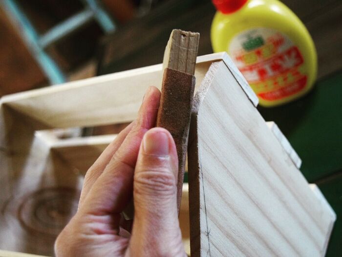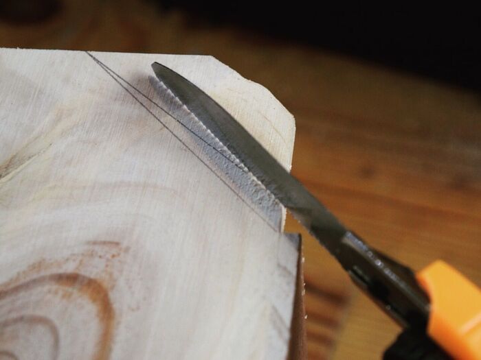 外した側の側面を斜めに鋸で切ります。