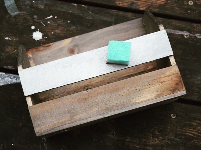 ホワイトの塗料をスポンジで塗り、乾かします。