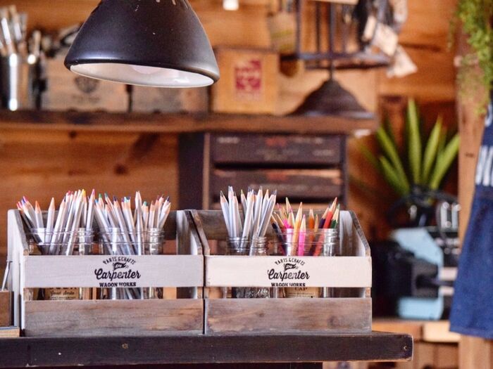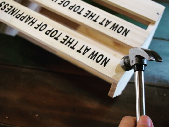 ホワイトにペイントした部分にお好みのハンコやステンシルをすると、オリジナルの作品になりますよ!