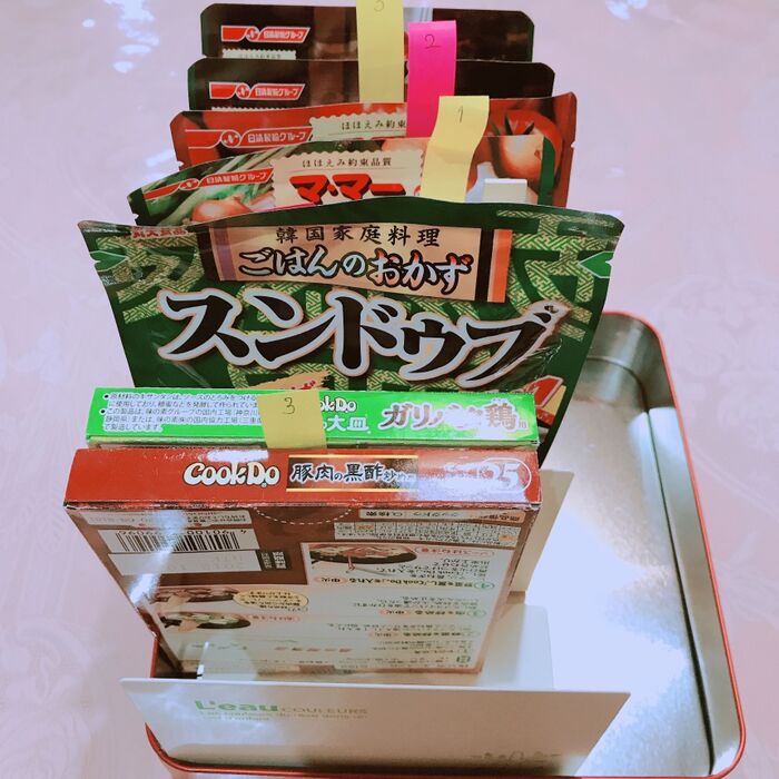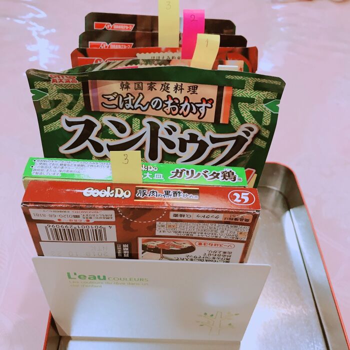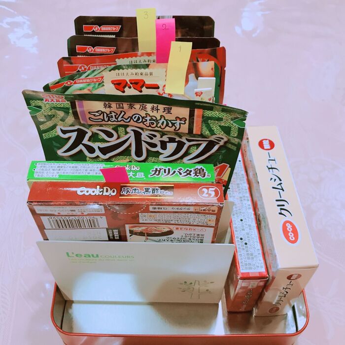 プラ袋→ブックエンド→箱系→ブックエンドで押さえます。