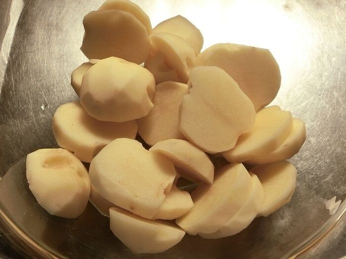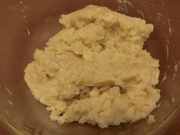 じゃが芋は小さく切ります。耐熱容器に入れ電子レンジ600wで10分位加熱し、熱いうちにつぶします。