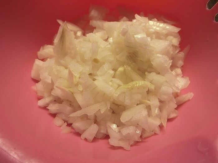 玉葱はみじん切りにして、ラップをかけずに電子レンジ600wで1分加熱します。
