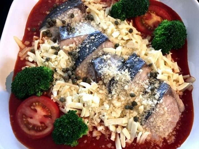 パルミジャーノ オリーブオイルをふり ケッパーをのせてオーブンで