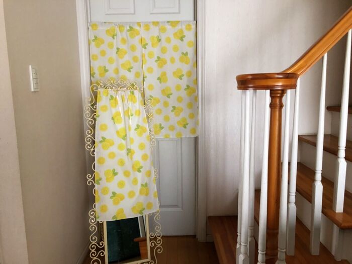 鏡のカバーにしたら可愛いとヒラメキ♡カーテンは2枚にする事に★