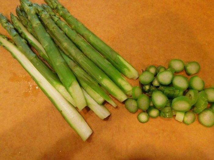 アスパラガス1本は小口切りにしてソースに加えるのがポイントです。