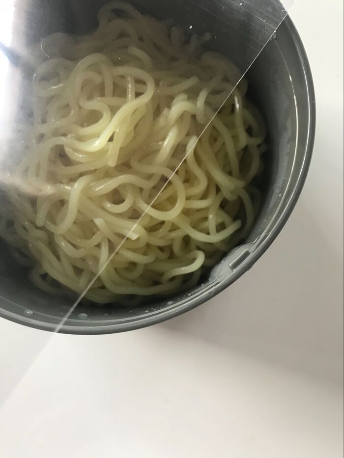 サランラップより具材を「スルリ」と麺の上に移せます。コンビニ商品からヒントを得ました。