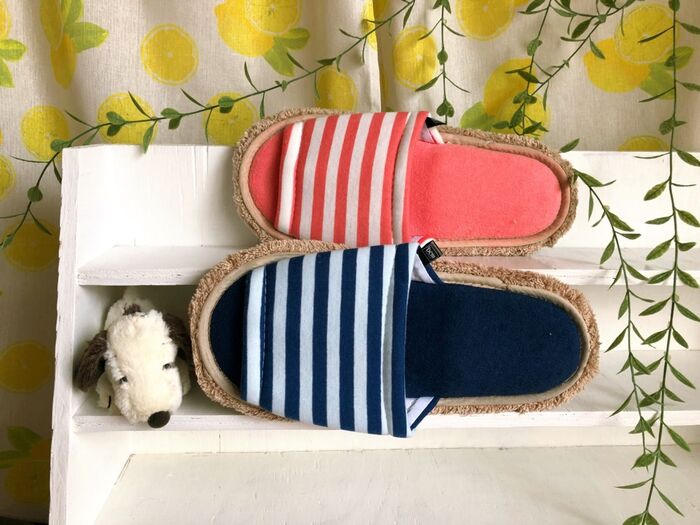 Mサイズは22㎝〜25㎝、Lサイズは25㎝〜27㎝でピンクと紺色のボーダー柄を買いました。