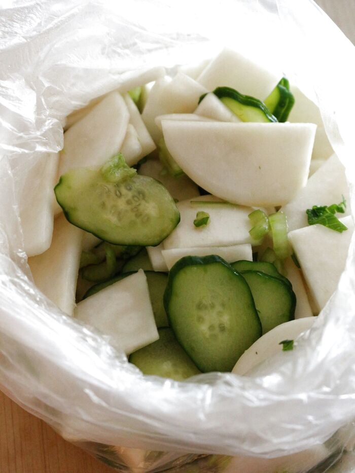 ③②に昆布ポン酢をかけて10分間置くと出来上がり。