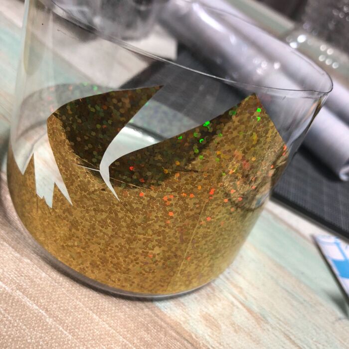 ペットボトルの下端にぐるっとホロテープを貼ります。