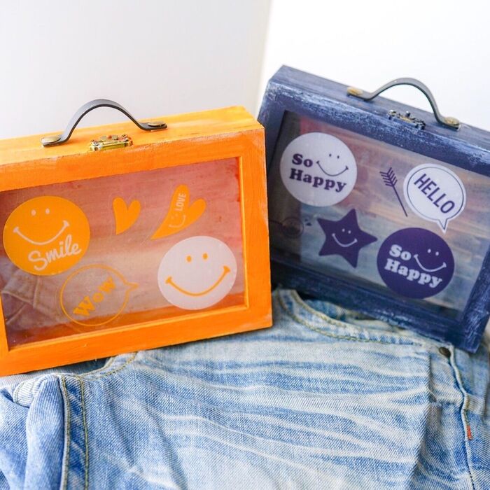 こちらのウォールステッカーを使用して、ミニサイズのトランクケースを作ってみました。工具不要で簡単DIYです。こちらも是非作り方をご覧下さい↓