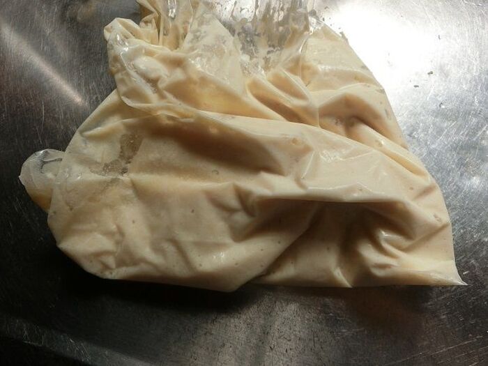 冷凍庫で2~3時間凍らせます。冷凍庫から取り出して室温に少し置き、柔らかくなったら袋ごともみ、器に盛り付けて完成♪